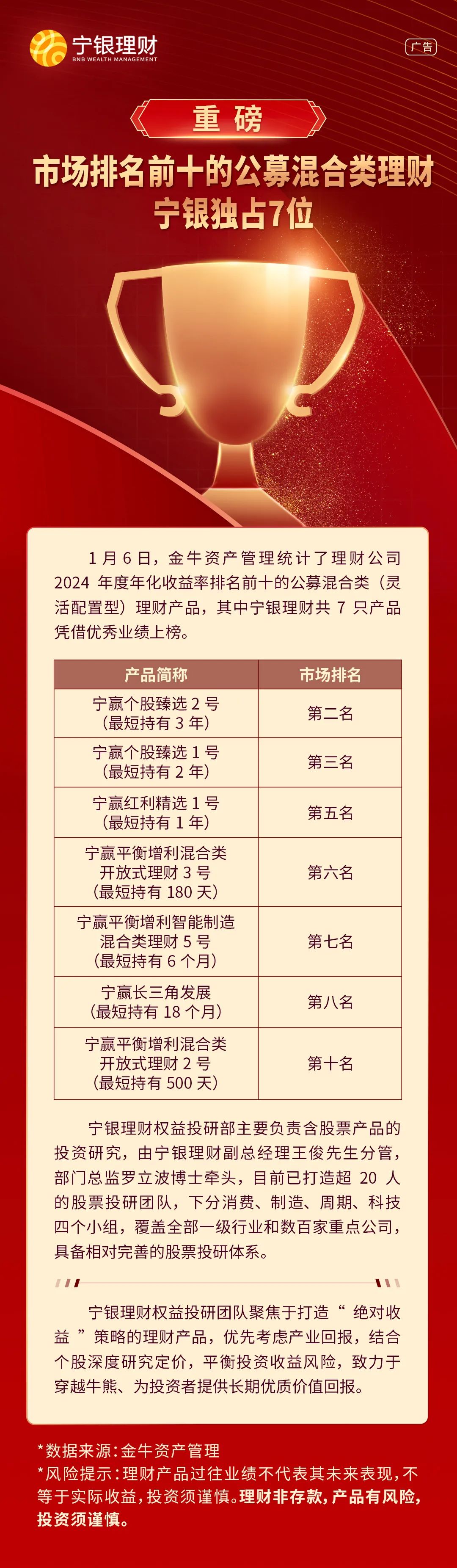 喜報 | 市場排名前十的公募混合類理財,寧銀理財獨占7位!